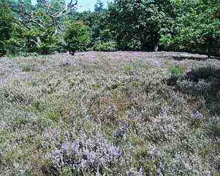 Nun ist ein kleiner Teil der Gimsbacher Gemarkung auch im Jahr 1967 unter Naturschutz gestellt worden, nämlich die aneinander grenzenden Waldstücke "Altes Schloß" in der Gemeindewaldabteilung Potzberg (Plan-Nr. 1023a) und, etwa 300 m südlich davon, der "Heidenhübel" oder "Wacholderberg" (in der Abteilung Schreckenstein, Plan-Nr. 1023b). Sie liegen etwa 1 Km von Gimsbach entfernt, nahe bei der Schreckmühle, nördlich der Straße nach Neunkirchen auf einer schroffen, zur Straße abfallenden Felskante. Schon 1940 wurde dieses Gebiet in den Naturschutzakten des Landkreises Kaiserslautern erwähnt als "Konglomeratfelsgelände mit alten verkrüppelten Bäumen mit gestauchten Stämmen und weit ausgreifenden Kronen". Wie der Name Wacholderberg, mundartlich " de Waggelerberch" besagt, muß hier einmal eine ausgedehnte Wacholderheide bestanden haben, wie man sie früher im Westrich häufiger antreffen konnte. Heute ist hier der Wacholder verschwunden, aber Heidekraut wächst in diesem von Felsbrocken übersäten Gelände noch reichlich. Horst Ohliger beschreibt in seinem 1992 erschienenen Buch "Eichen, Buchen, Linden. Naturdenkmale im Westrich" hier in dem lichten Gelände, das eher einen park-als waldartigen Charakter aufweist, nicht weniger als 19 geschützte Einzelbäume, darunter eine Eiche von 4.25 m Umfang, eine dicke Rotbuche mit bemerkenswerter Wurzelbildung und eine durch ihren Wuchs merkwürdige, verkrüppelte Waldkiefer.