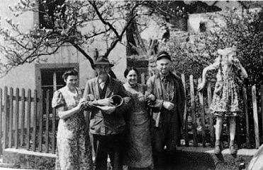 Bild aus der Festschrift zur 675 Jahrfeier des Dorfes Gimsbach u. 250 Jahre Kirche; v.L. Leyser Karl†, Hamm Hermann†, Müller Jakob†, Brauchler Jakob†, Stemler Jakob†