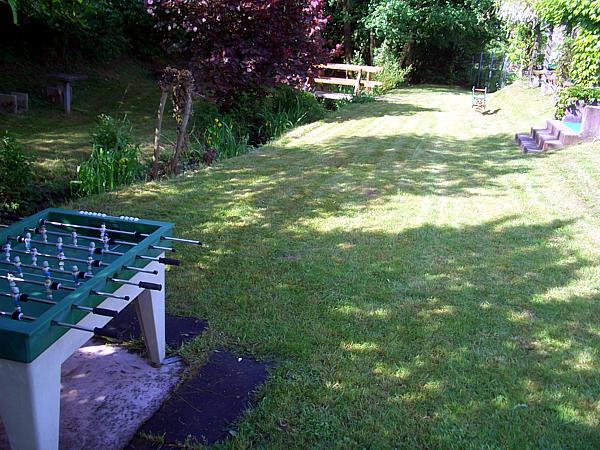 Auf der kleinen gemütlichen Liegewiese steht für Jung und Alt ein Tischfussball bereit.