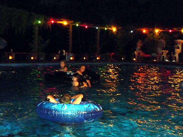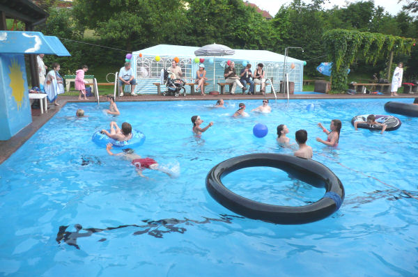 Beim Nachtschwimmen (Spezialangebot in der Saison) haben die Badegäste Gelegenheit bis Mitternacht zu schwimmen.