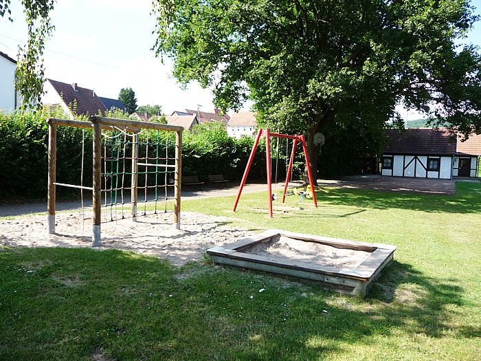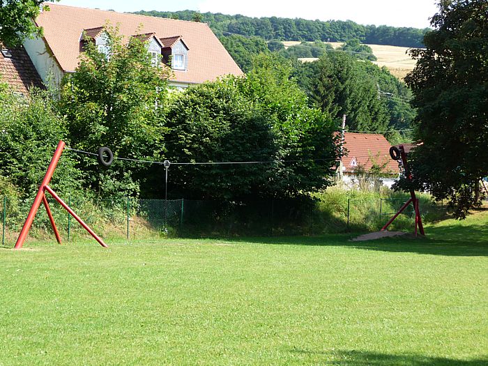 Der Spielplatz im Ortsteil Eisenbach hat neben dem großen Bolzplatz einige besondere Spielgeräte (Seilbahn und Kletterkombination) aufzuweisen.