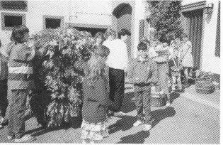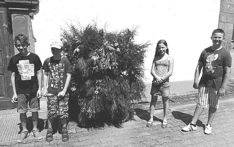 Nach diesen Worten ertönt dann ein lautes Quaken aus dem Pfingstwägelchen, das die Zufriedenheit der Kindergruppe über die dargereichte Spende bezeugen soll.