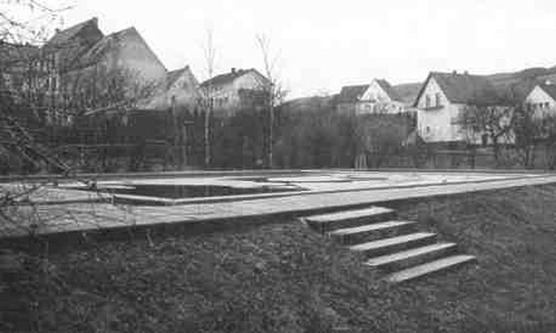 So kam es denn wie es kommen musste oder besser gesagt, beabsichtigt war. Das Löschwasserbecken wurde durch die Dorfjugend als Schwimmbad genutzt. Natürlich ohne jegliche Eintrittsgebühren und ohne Badeaufsicht. Damals war das eben alles noch etwas anders. Und wer dringend mußte, der begab sich zu den Toiletten im nahegelegenen Feuerwehrgerätehaus oder schlug sich durch die Büsche. Die ebenfalls in diesem Gebäude untergebrachten Umkleidekabinen wurden nur sehr sporadisch genutzt. Man zog sich einfach unter einer mitgebrachten Decke bzw. Teppich um.Außerdem gab es genügend Buschwerk entlang des Baches, das ausreichend Sichtschutz bot. Im übrigen musste letzterer im Zuge der Baumaßnahme begradigt und in ein anderes Bett verlegt werden. Dies geschah wie vieles andere auch, natürlich in Eigenleistung.